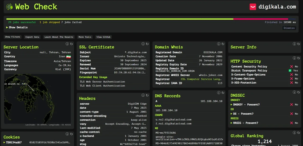 🔍 در کمتر از ۲۰ ثانیه، وب‌سایت رو مثل یک هکر بررسی کن!